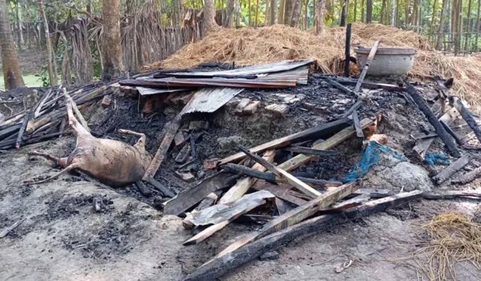 ইন্দুরকানী (পিরোজপুর) প্রতিনিধি: ইন্দুরকানী উপজেলার বালিপাড়া দক্ষিণ ঢেপষাবুনিয়া গ্রামের দরিদ্র কৃষক নুরুল ইসলাম মৃধার গোয়ালঘর আগুনে পুড়ে ভস্মীভূত হয়েছে। এতে তার দুটি গরু মারা যায়।