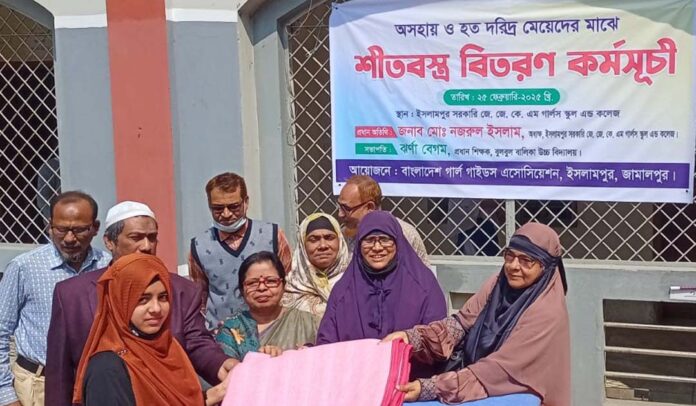 জামালপুর প্রতিনিধি ঃ জামালপুরের ইসলামপুর সরকারি জে জে কে এম গার্লস স্কুল এন্ড কলেজে অসহায় ও দরিদ্র শিক্ষার্থীদের মাঝে বাংলাদেশ গার্ল গাইডস এসোসিয়েশনের পক্ষ থেকে শীতবস্ত্র বিতরণ করা হয়েছে। মঙ্গলবার (২৬ ফেব্রুয়ারি) সকালে সরকারি স্কুল মাঠে শিক্ষার্থীদের মাঝে শীতবস্ত্র বিতরণ করার সময় প্রধান অতিথি হিসেবে উপস্থিত ছিলেন সরকারি জে জে কে এম গার্ল স্কুল এন্ড কলেজের ভারপ্রাপ্ত অধ্যক্ষ মোঃ নজরুল ইসলাম। সভাপতিত্ব করেন গার্ল গাইডস এসোসিয়েশনের উপজেলার স্থানীয় কমিশনার ও বুলবুল বালিকা উচ্চ বিদ্যালয়ের প্রধান শিক্ষক ঝর্না বেগম।