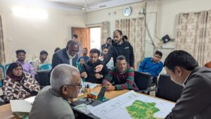 মাটিভাঙ্গা ইউনিয়ন পরিষদের চেয়ারম্যান মোঃ জাহিদুল ইসলাম-এর সভাপতিত্বে অনুষ্ঠিত গণশুনানিতে চলমান পিরোজপুর জেলার তিনটি উপজেলার উন্নয়ন পরিকল্পনা প্রণয়ন প্রকল্প এর কার্যক্রম সম্পর্কে বিস্তারিত তথ্য উপস্থাপন করেন নগর উন্নয়ন অধিদপ্তরের নগর পরিকল্পনাবিদ শুভাশিস গোস্বামী।